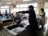 5校時に長倉小学校の3年生が来校して、行幸小学校の見学をしました。校長室や職員室、校庭や特別教室を見学し、長倉小学校の施設との違いについて気が付いたことをまとめていました。
