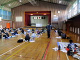 昼休みに、休み時間中の避難訓練を行いました。地震発生からの火災を想定し、休み時間にそれぞれの場所で過ごしている中で、どのように行動すべきかを気づかせ・考えさせて・行動させる訓練でした。やるべきことをしっかりやって、雨のため避難場所になった体育館に集まることができました。