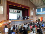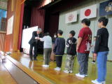 児童集会は代表委員会の発表でした。前半は代表委員一人一人が、挨拶のできる学校にしたいやいじめのない学校にしたいなどの決意表明をし、後半は代表委員会が作ったクイズをやりました。よく考えられた問題があり、盛り上がりました。