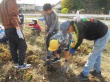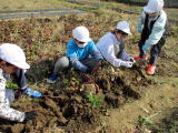 5校時にすみれ学級がさつまいも掘りを行いました。土が硬く、いもを探すのも苦労をしていました。土が硬いせいか、さつまいもは小さいものばかりで、数も多くなく、正直良い出来ではありませんでしたが、穏やかな天気の中で楽しく芋ほりができました。