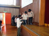本日は1年生が学校探検をしました。学校の中を担任の引率の下で巡りました。途中、お兄さん・お姉さんの授業の様子を真剣に見学をする様子が見られました。