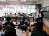 6年生は、5時間目が外国語で、市内から外国語部会の先生にお越しいただいて、公開授業を行いました。どこにいってみたいですか(国)を訪ねる会話を友達や先生、ALTとやって楽しんでいました。