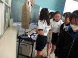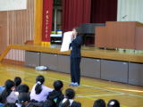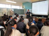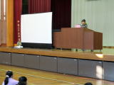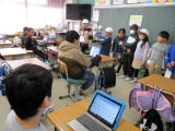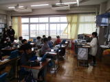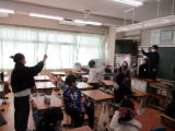 2・3校時に、ピースキャラバンと言って、埼玉ピースミュージアム(埼玉県平和資料館)の職員の方に来ていただき、歴史の勉強、戦争をテーマにした学習を行いました。社会の時間でも学習をしていますが、戦争の時代の遺品とパワーポイントの資料を使って、当時の状況をリアルに説明してくださいました。子供たちの様子は真剣そのものでした。