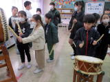 3・4校時に1年生は昔遊びを行いました。地域から昔遊びの名人に多数お越しいただき、駒回し、竹とんぼ、お手玉、あやとりなどの昔遊びのコツを伝授いただきました。子どもたちはそれぞれのブースを回って、すべての昔遊びを楽しみました。