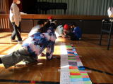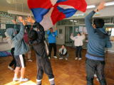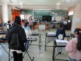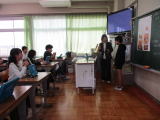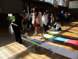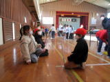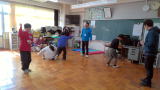 3校時にすみれ学級はNPO法人一歩いっぽ代表の関口さんにお越しいただき、ムーブメントという療育を行いました。道具と体を使い、楽しみながら学習を行っていました。 |