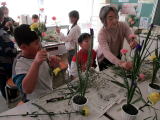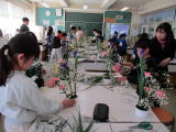 3・4校時に3年生は生け花の授業を行いました。講師は、いけばな幸手ふれあい教室の深澤先生と巻島先生でした。生け花の生け方はもちろん、生け花という文化について話をしていただき、勉強になりました。子どもたちは説明をよく聞いて、花の長さであったり、生ける角度であったりを考えながら、楽しそうに活動をしていました。