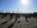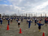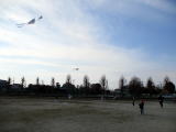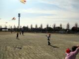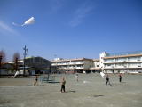 4校時に1年生は凧揚げを行いました。風も強くて、凧揚げには最高の日和でした。白地の凧が青空に映え、気持ちよく泳いでいるようでした。1年生は凧揚げにも慣れ、上手に凧揚げができる子が増えてきました。