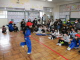 業前の時間はおはようタイムで、全校で縄跳びの練習を行いました。音楽に合わせて、前飛びや後ろ飛び、あや跳び、二重跳びなどを行いました。寒い日でしたが寒さを吹き飛ばすくらい元気に縄跳びを楽しみました。