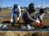 今日は行幸地区に今年度作られたぶどう農場でぶどう苗の植樹が行われ、本校から希望制で申し込んだ子どもたちが植樹体験をしました。天気はよかったのですが、風が強くて作業も大変なところがありました。そのような中でも、熱心におうちの方と作業をする姿がありました。植えた苗はまだ小さかったですが、これから生長して今年中にはぶどうができるとも話されていました。今からとても楽しみです。 |