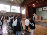 3校時に6年生を送る会を行いました。在校生が1年生から順番に6年生に対して感謝の気持ちを表す歌や劇、呼びかけなどを行い、最後に6年生がお礼として歌と合奏のプレゼントをしてくれました。流石6年生という歌と合奏で、体育館に感動の拍手が沸き起こりました。 |