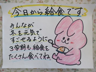 今年もおいしい給食が始まりました。栄養士さん、調理員さん、よろしくお願いします。