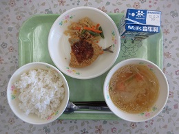 ハンバーグは、いつものお肉と違ってさっぱりとしていましが、やっぱりおいしい。