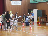 4年生が、警察や交通安全協会の皆さん、PTAのボランティアの皆さんにご指導をいただいて、自転車運転免許講習会に挑みました。出発までの作法、とまれの標識、壁に囲まれた交差点や注射している車を通りこすなど、実戦さながらのテストで、全員が頑張って合格です。事故のない安全な運転で乗れるようにしたいですね。