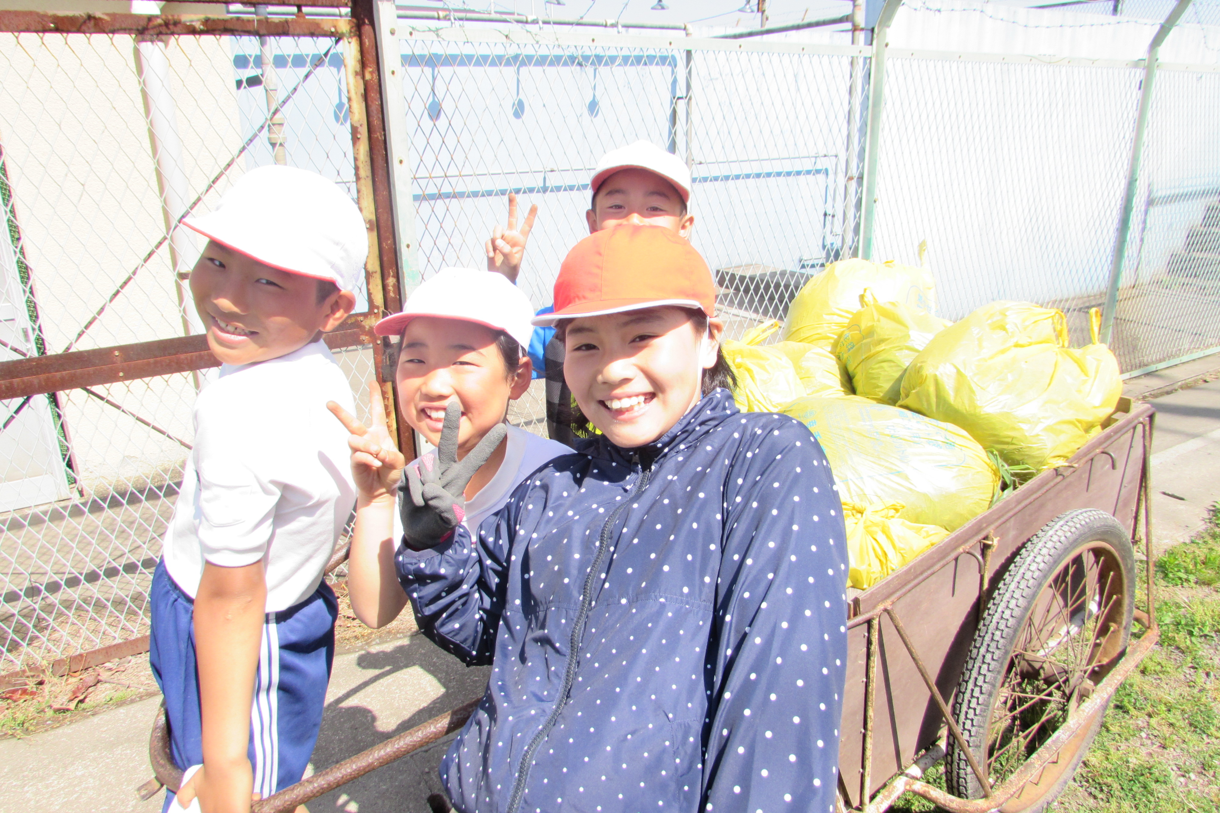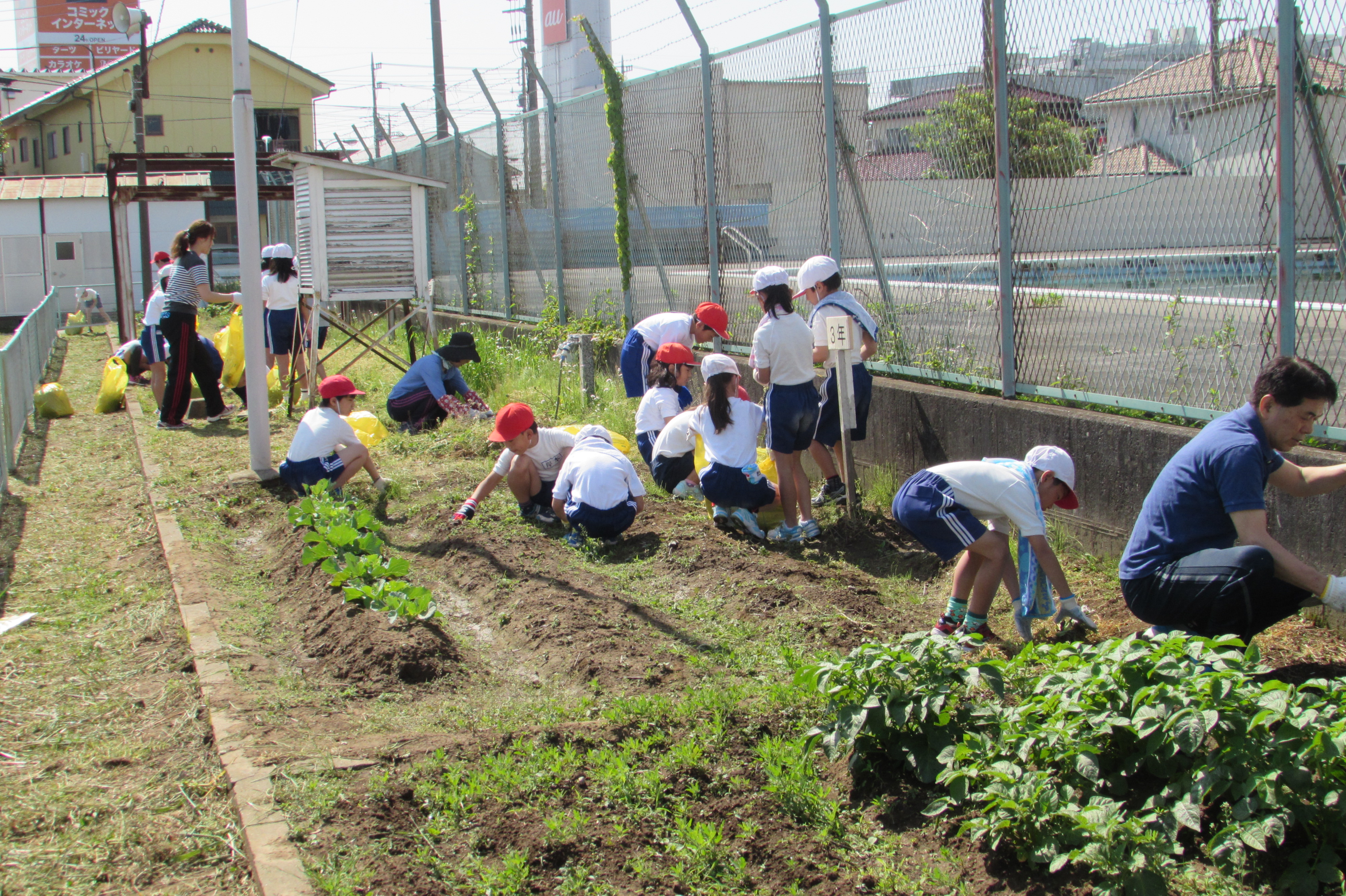1校時に全校で除草活動を行いました。晴れていて日差しは強かったですが、どの子も学校をきれいにしようと真剣に取り組んでいました。