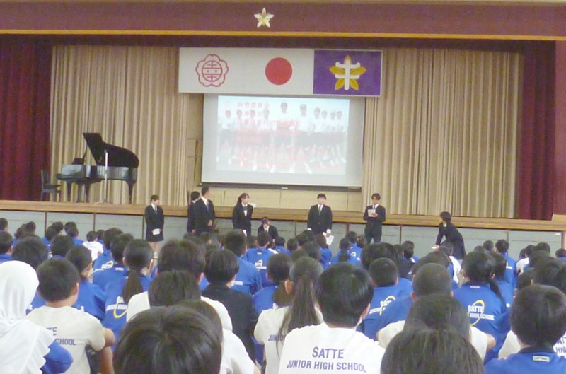 また、週明けの13日(月)は同じく体育館で、「幸手中生の1日」集会が行わ れました。幸手中の朝からの生活をたどりながら、様々なルールや気をつけないといけないことを確認しました。令和8年度の生活の足下を、しっかりと固めている毎日です。
