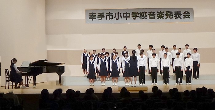 3学年の最優秀賞を獲得した2組は、11月8日にアスカル幸手で行われた幸 手市小中学校音楽発表会に出場し、歌声を披露しました。