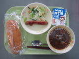 こどもパン 牛乳 手作りコロッケ ゆでキャベツ アサリとたまごのスープ |