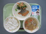 ご飯 牛乳 鮭のちゃんちゃん焼き おひたし けんちん汁 |