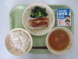 ご飯 牛乳 鶏肉の唐揚げ ごま酢和え みそ汁 |