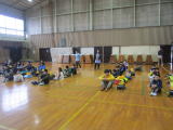 本年度最後のチャレンジタイムを行いました。チャレンジタイムでは、体力を高めるために多様な運動を行ったり、縄跳びなど季節に応じた運動を行ったりしてきました。また、集団行動で行進も行ってきました。今日は、雨のため体育館で行いました。ブリッジやかえる倒立を全校で行いほとんどの児童が30秒をクリアーすることができました。また、グループを作る活動では、高学年が積極的に声をかけ、低学年と一緒のグループを作ることができました。さすが気遣いの6年生。最後に縦割りグループで、ボール渡しゲームをしました。みんなで、協力して楽しむことができました。 |