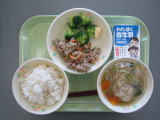 ご飯 牛乳 肉野菜炒め ゆでブロッコリー ワンタンスープ |