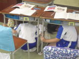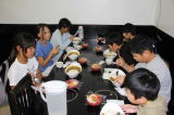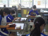 日曜日に保護者の方の協力を得て、親子奉仕活動として校内清掃を実施しました。その後、校庭で災害時を想定した飯ごう炊飯体験を行いました。なるべく節水することを考えながら飯ごう炊飯とみそ汁作りに取り組んでいました。