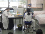正しい歯みがきのしかたについて、歯科衛生士の方々から丁寧に教えていただきました。1年生は親子で参加し、磨きづらい奥歯の上手な磨き方を学んでいました。