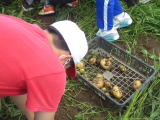| 1時間目に6年生がじゃがいもの収穫を行いました。雑草の勢いにも負けず、丸々と大きく育ったじゃがいもが収穫できました。昼休みはマッスルタイムで、3・4年生がマット運動を行いました。前転や後転、倒立前転と習熟度に応じて場所に分かれて練習を行いました。ほんの15分程度の時間でしたが、コツをつかんで上手に回れるようになった子もいました。 |