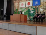 | 5時間目に本年度転出された先生方をお招きし、離任式を行いました。子どもたちからは感謝の言葉と花束のプレゼントを贈りました。感謝の言葉は、代表者は皆言葉を暗記し、堂々と伝えることができ立派でした。涙の離任式となりました。 |