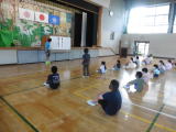 | 昼休みにマッスルタイムを行いました。マッスルタイムとは、器械運動を中心に運動技能の向上を狙って、体育の時間とは別に実技練習を行うもので、昨年度から始めました。今はマット運動の技能を高める目的で行っています。今日は低学年で、様々な動物歩きを行って、体の動かし方という、運動の基礎ともいうべきことに狙いを絞って行いました。来週は中学年で行う予定です。 |